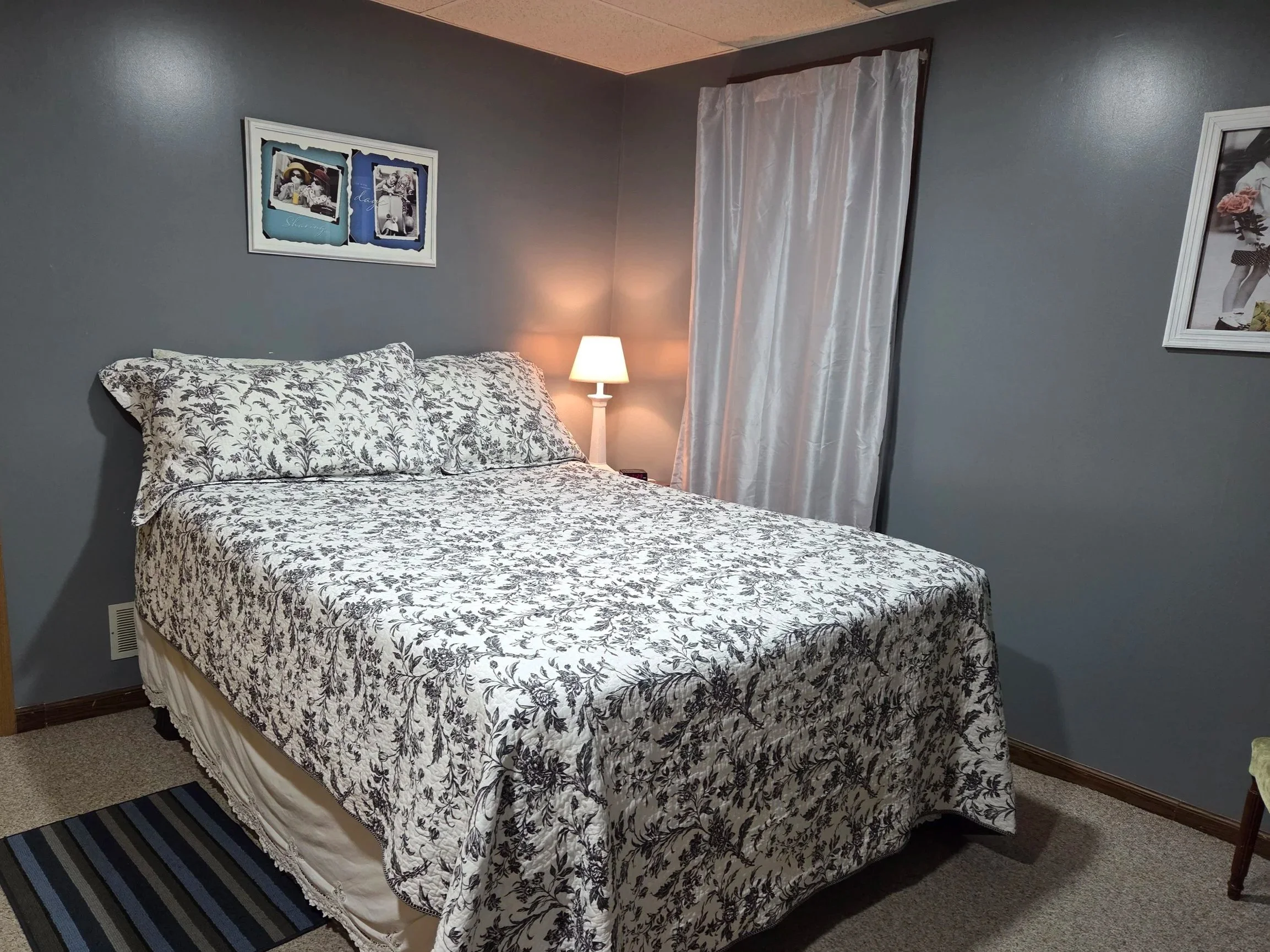 This room comes furnished with 1 queen bed. You can sleep up to two people. It is located on the West side of the barn, and next to the patio, with an outdoor entrance to the room.